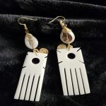 - Design: The top part of the earring showcases a copper seashell combination. Below it, there’s a large unfinished bone bone-made comb